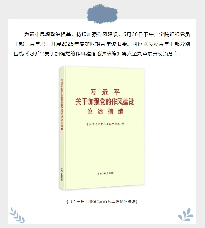 • 书香筑根基,实干书新篇 | 学院举办第四期青年读书会